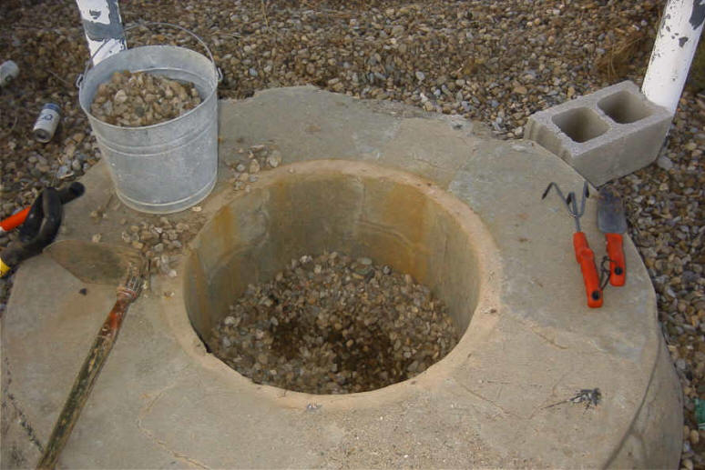 BEGINNING THE FUN TASK OF REMOVING 4 TONS OF SAND AND A LITTLE GRAVEL FROM THE ESCAPE SHAFT