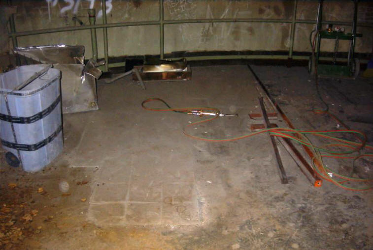 PREPARING TO CUT FLOOR FOR LOWER LEVEL DEBRIS REMOVAL
